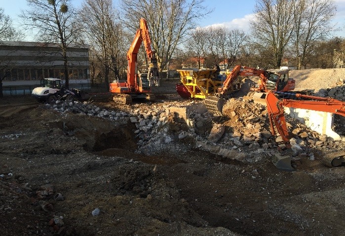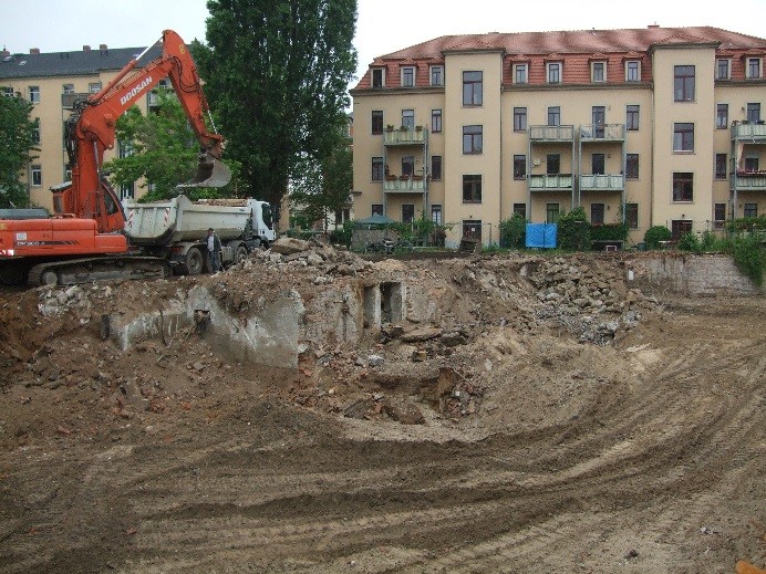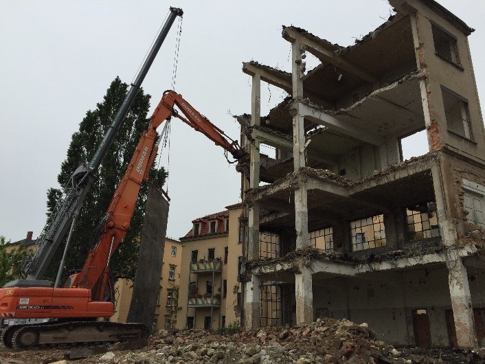 Abbruch altes Schulgebäude auf der Eisenstuckstraße 13 in Dresden