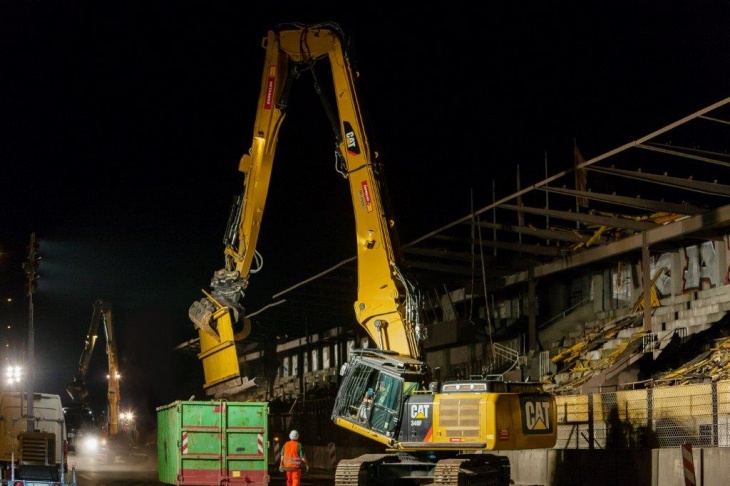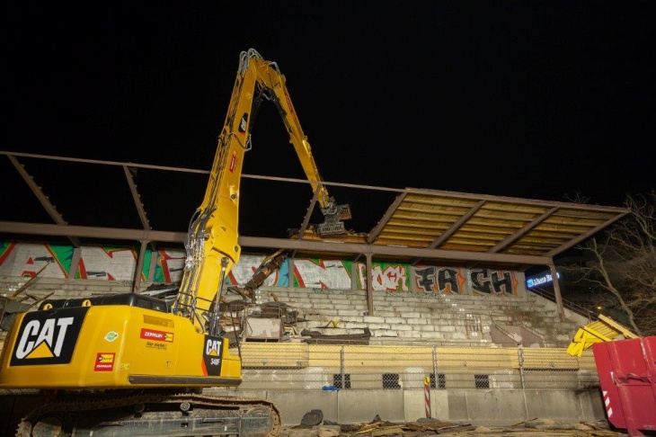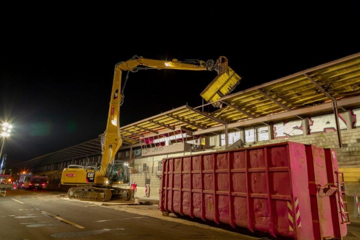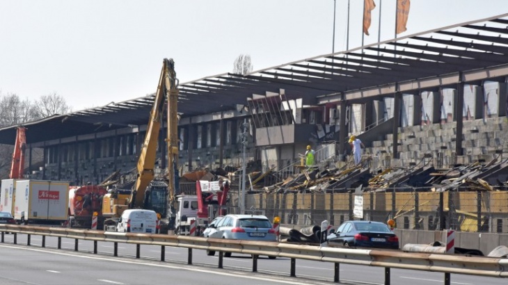 Abbruch einsturzgefährdetes Tribünendach der Avus in Berlin